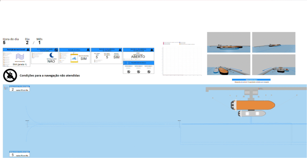 Projeto de modelagem e simulação da operação Ship-to-Ship para descarga de petróleo. Estudo conduzido pelo CILIP/USP analisa gargalos logísticos, produtividade e variáveis ambientais em cenários portuários.